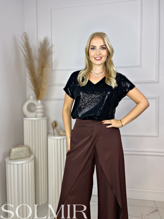 Bluzka GOODIE to połączenie zmysłowego blasku i elegancji w nowoczesnym wydaniu. Uszyta z efektownej, błyszczącej tkaniny, pięknie odbija światło i przyciąga spojrzenia, doskonale komponując się z eleganckimi spodniami czy spódnicą. Dekolt w literę V subtelnie podkreśla szyję i obojczyki, a lekko opadające rękawy nadają całości lekkości i kobiecego uroku. Krój jest delikatnie luźny, co zapewnia wygodę i swobodę ruchu, jednocześnie zachowując szykowny charakter stylizacji. To idealna propozycja na wieczorne wyjścia, uroczystości i wszystkie chwile, gdy chcesz poczuć się wyjątkowo.