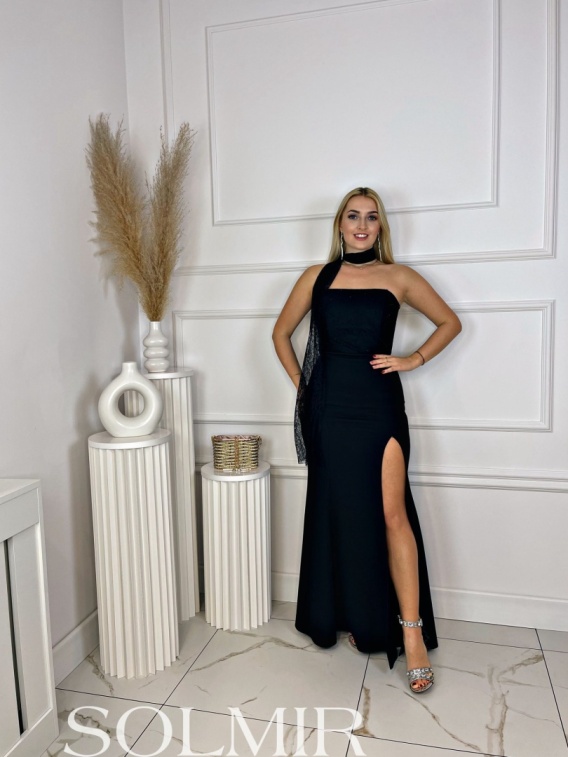 Model ANTIS to ponadczasowa, niezwykle elegancka kreacja o dopasowanym kroju, który perfekcyjnie podkreśla sylwetkę. Gorsetowa góra bez ramiączek pięknie eksponuje ramiona i dekolt, a efektowne rozcięcie na nodze dodaje całości zmysłowego charakteru. Dekoracyjny szal przy szyi stanowi wyjątkowy akcent stylizacji, a wiązanie na plecach pozwala idealnie dopasować sukienkę do figury. To doskonały wybór na gale, bale, wesela i wyjątkowe wieczorne wyjścia.