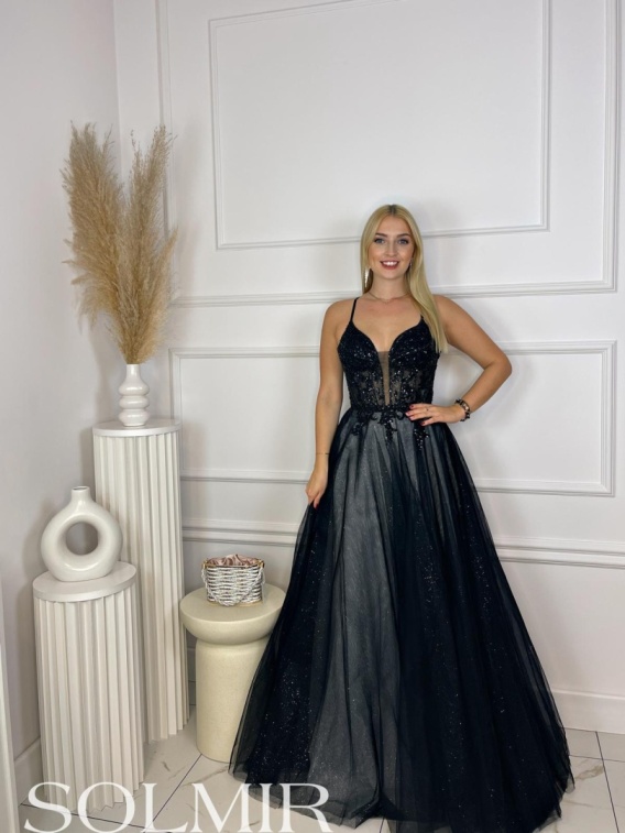 ✨ Sukienka MALEDIWA to spektakularna propozycja maxi, która przyciąga wzrok bogatym zdobieniem i delikatnym blaskiem. Gorsetowa góra z cienkimi ramiączkami zachwyca efektownym wyszywaniem z cekinów i koralików 💎, a transparentne wstawki dodają jej lekkości i subtelnej zmysłowości. Tył z efektownym wiązaniem pozwala idealnie dopasować sukienkę do sylwetki. Rozkloszowany dół z kilku warstw tiulu pięknie układa się w ruchu, tworząc bajkowy efekt ✨. Idealna na bale, studniówki czy przyjęcia, gdzie chcesz błyszczeć ✨.