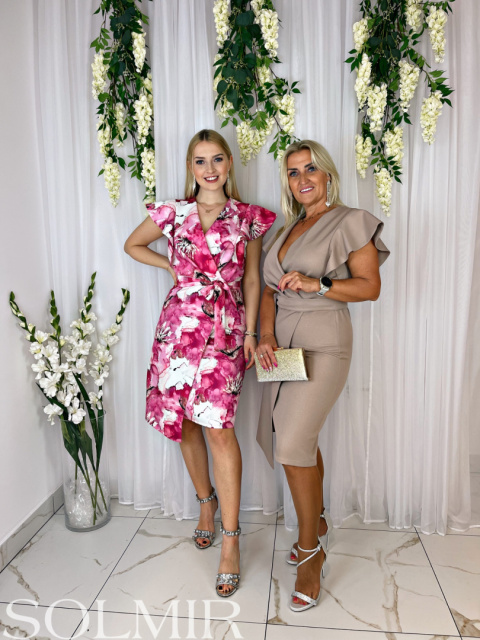 Sukienka BALISA to elegancka propozycja o kopertowym fasonie, który podkreśla sylwetkę i dodaje jej subtelnej kobiecości. Góra z dekoltem w kształcie litery „V” optycznie wydłuża szyję, a krótkie, lekko falowane rękawy nadają lekkości. Talia zaakcentowana jest wiązanym paskiem, który modeluje figurę i dodaje całości stylowego wykończenia. Ołówkowy krój z asymetrycznym dołem sprawia, że sukienka doskonale nadaje się zarówno na eleganckie spotkania, jak i wyjątkowe okazje, łącząc klasykę z nowoczesnym szykiem.