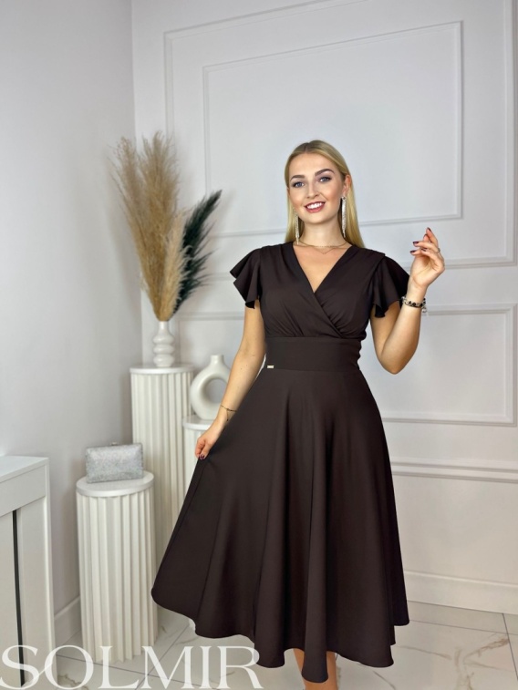 👗 Sukienka LAMIRA to elegancki model midi, który łączy klasyczną prostotę z nutą kobiecości 💕. Posiada łagodny dekolt oraz motylkowe rękawy, które nadają jej delikatnego uroku. Talia jest podkreślona subtelnym przeszyciem i gumką z tyłu, a rozkloszowany dół pięknie układa się w ruchu, zapewniając swobodę i komfort noszenia 🌸. Wykonana z przyjemnego, lekko elastycznego materiału, idealnie dopasowuje się do sylwetki, nie krępując ruchów. Sprawdzi się zarówno na co dzień, jak i na wyjątkowe okazje ✨.