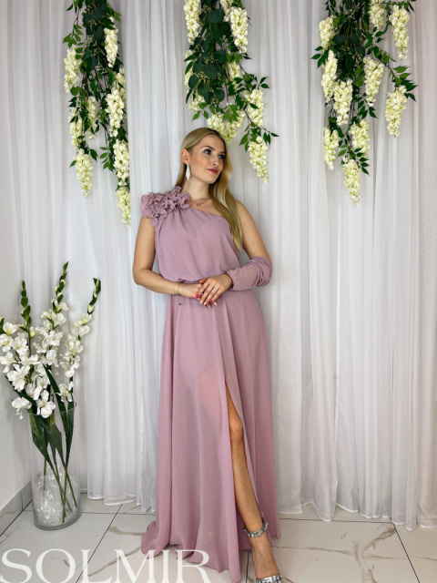 Sukienka SEWILLA to zwiewna i elegancka kreacja, wykonana z delikatnego szyfonu. Zaprojektowana na jedno ramię, subtelnie eksponuje ramiona i dodaje lekkości sylwetce. Uroku dodaje jej broszka w postaci kwiata, umieszczona w strategicznym miejscu, która stanowi elegancki akcent. Idealna na letnie wieczory, przyjęcia i specjalne okazje, sukienka SEWILLA łączy w sobie nowoczesny design z romantycznym stylem.